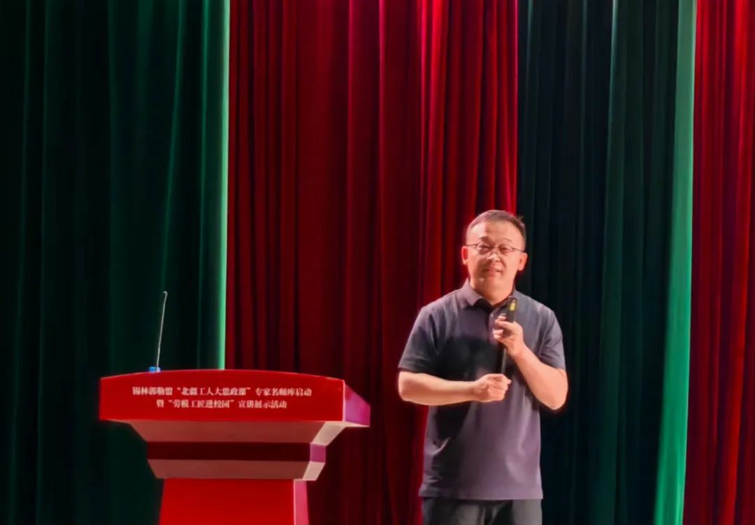 为充分发挥广大劳模工匠及各行各业先进人物在加强新时代劳动教育的榜样引领作用,5月13日,锡林郭勒盟“北疆工人大思政课”专家名师库启动暨“劳模工匠进校园”宣讲展示活动在锡林郭勒职业学院举行。活动特邀三位来自不同领域的劳模代表——全国劳动模范王建清、全国劳动模范乌音嘎、内蒙古自治区五一劳动奖章获得者郭梁与700余名师生代表共同开启一场关于匠心传承的对话。