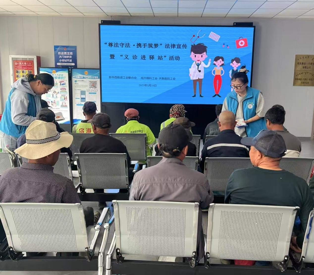 5月16日,新华西街道工会联合会与旭升眼科医院工会、天衡医院工会,在南零工市场工会驿站共同开展“尊法守法·携手筑梦”法律宣传暨“义诊进驿站”活动。