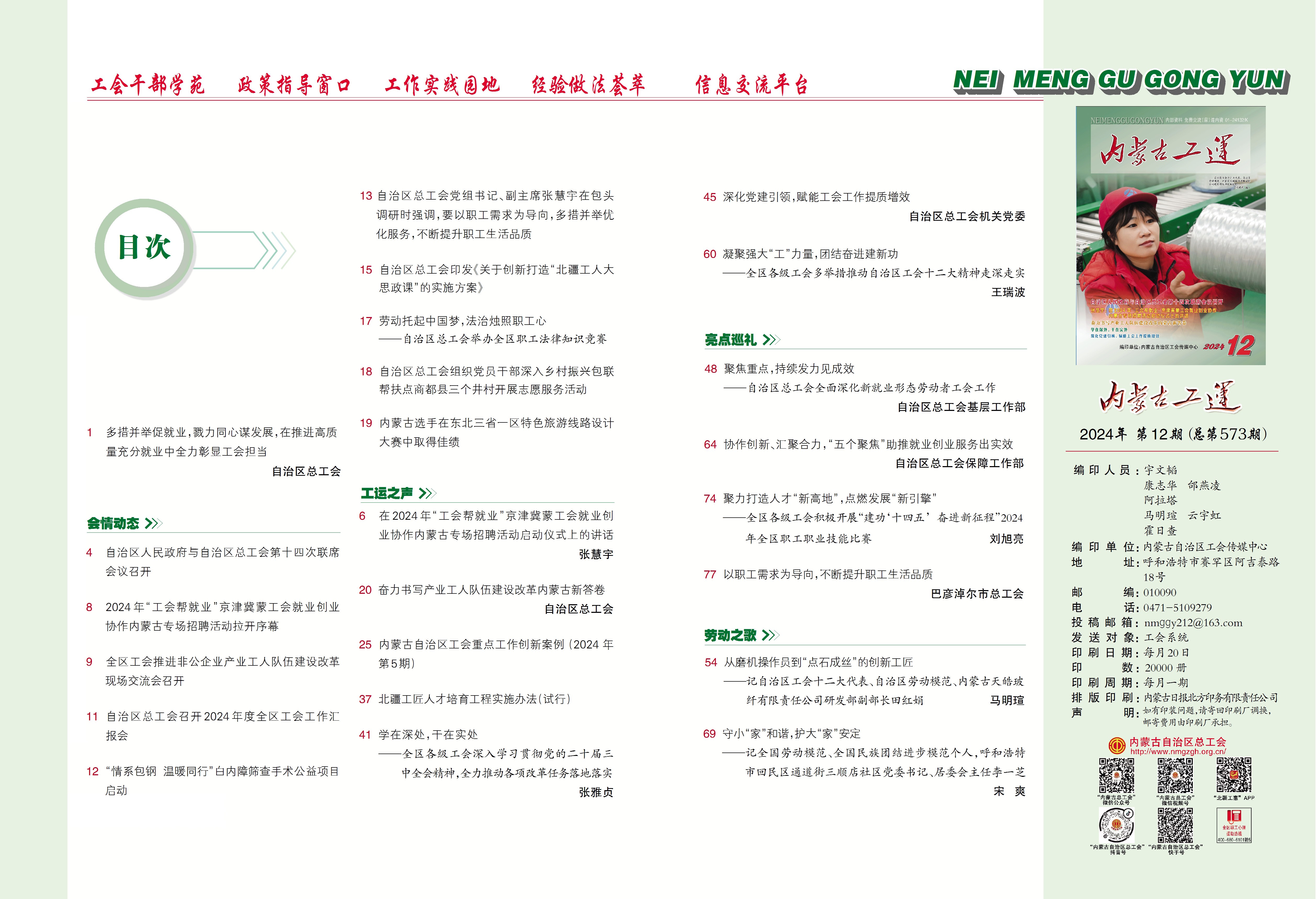 《内蒙古工运》2024年第12期封面、目录展示