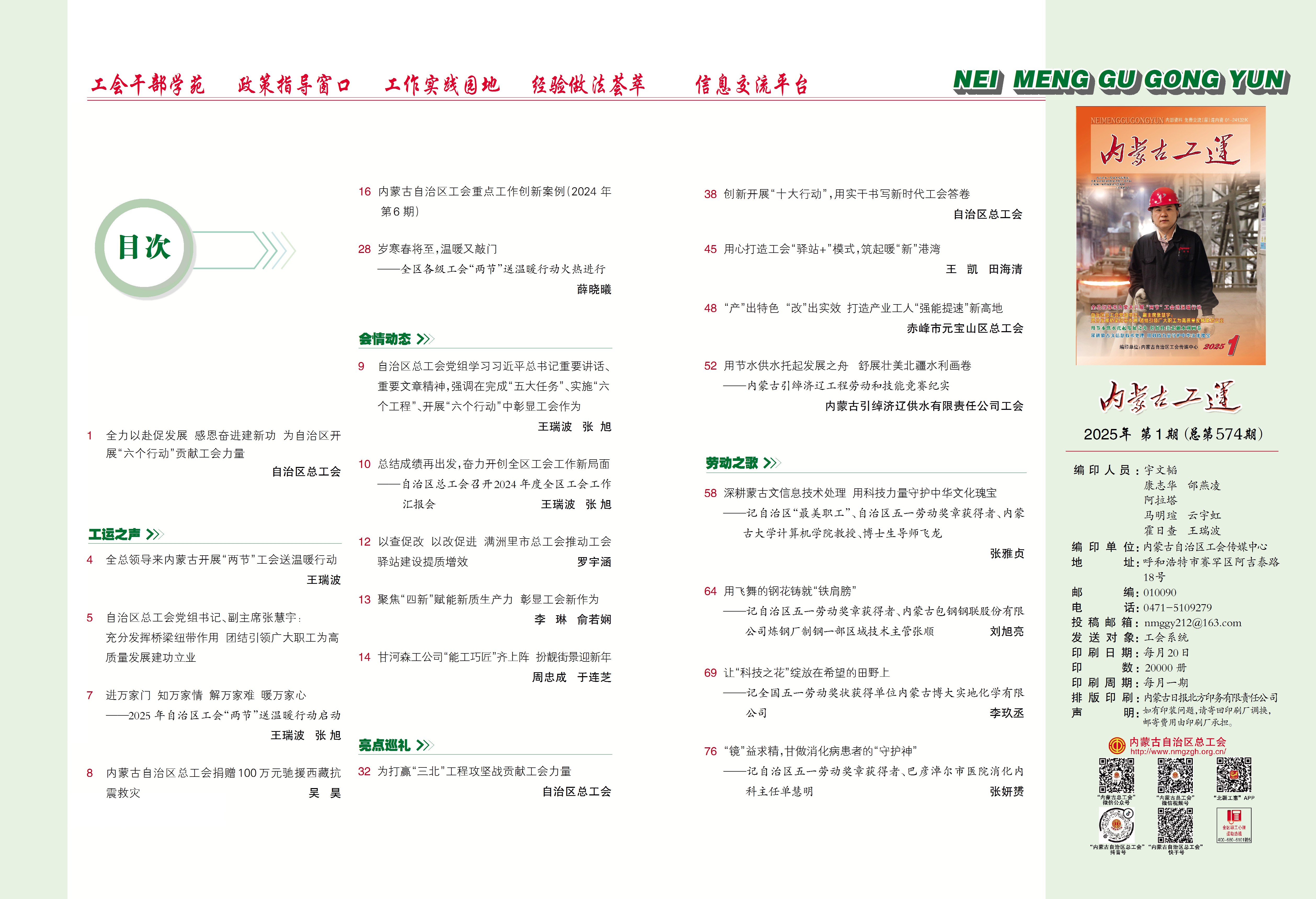 《内蒙古工运》2025年第1期封面、目录展示