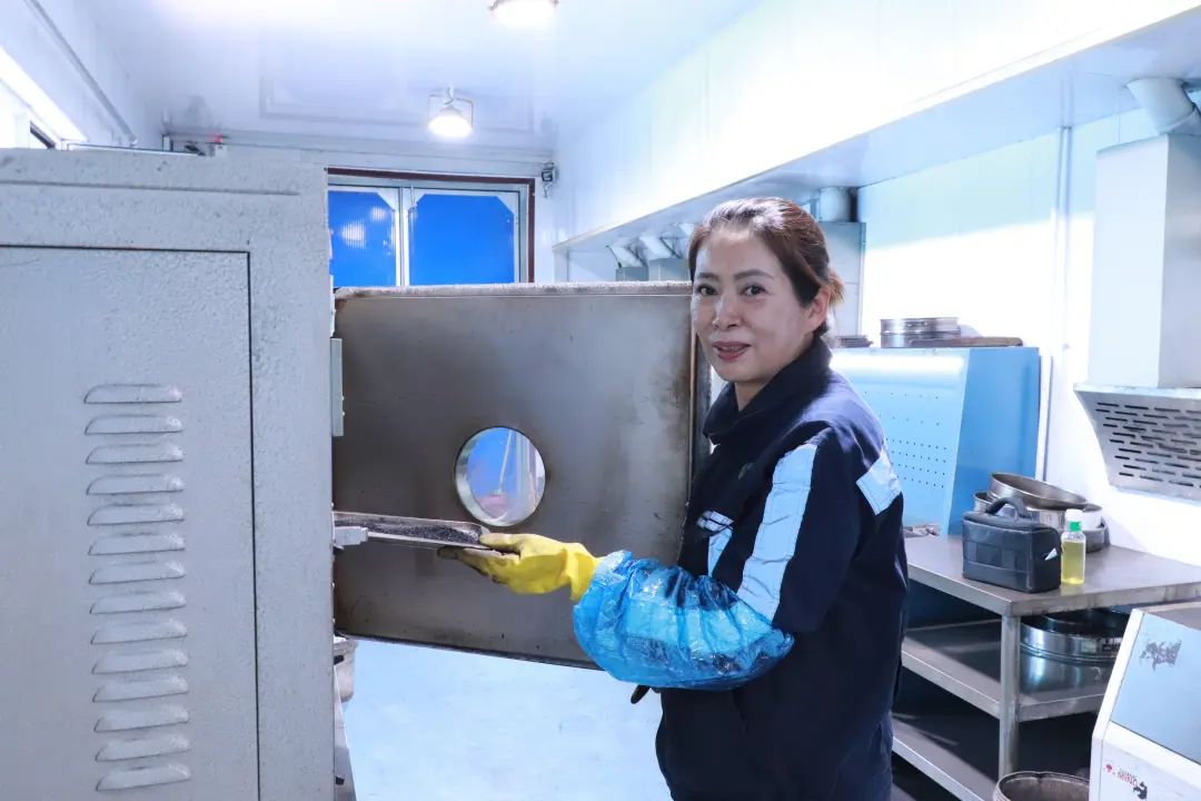 制样工作不只是在室内与煤尘相伴,更需直面矿区的严寒考验。在零下30多度的严冬,户外采集的煤样常被冻成坚硬的整体。常规破碎机对此束手无策,强行操作极易损坏设备。乔彩霞没有退缩,她顶着刺骨寒风,用特制工具小心地将冻煤块敲裂成拳头大小,再分批送入破碎机。每一次敲击都震得虎口发麻,冷风如刀割面,防护镜上结满白霜。正是这样艰苦卓绝的手工预处理,确保了每一份冻煤样品最终都能被精准制备,为后续分析提供了可靠基础。