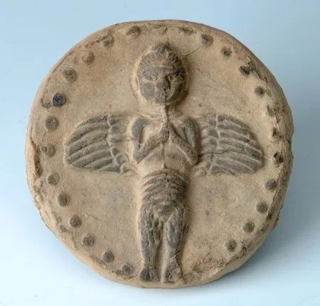 ▲唐羽人瓦当,青海民和川口镇出土。这种题材的瓦当在唐代并不多见,羽人形象应为西亚文化在青海的本土化。(图片来源:青海省博物馆)
