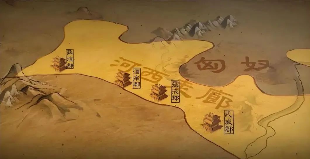 ▲河西四郡。(图片来源:纪录片《河西走廊》)