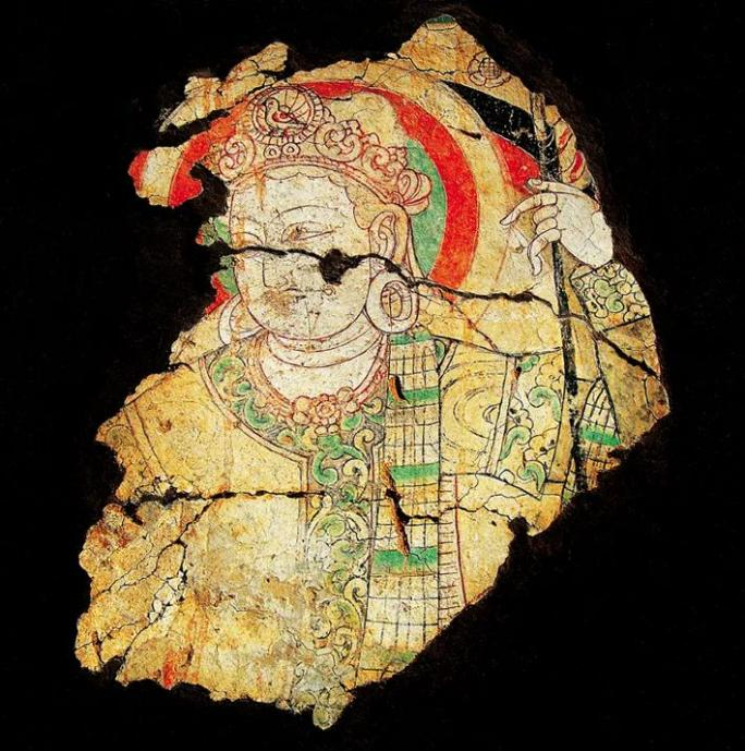 ▲新疆托普鲁克墩1号佛寺遗址出土的毗沙门天王残像上部。(图片来源:新疆维吾尔自治区和田地区旅游局)