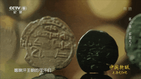 ▲喀喇汗王朝的“桃花石可汗”钱币。(图片来源:纪录片《中国新疆之历史印记》)