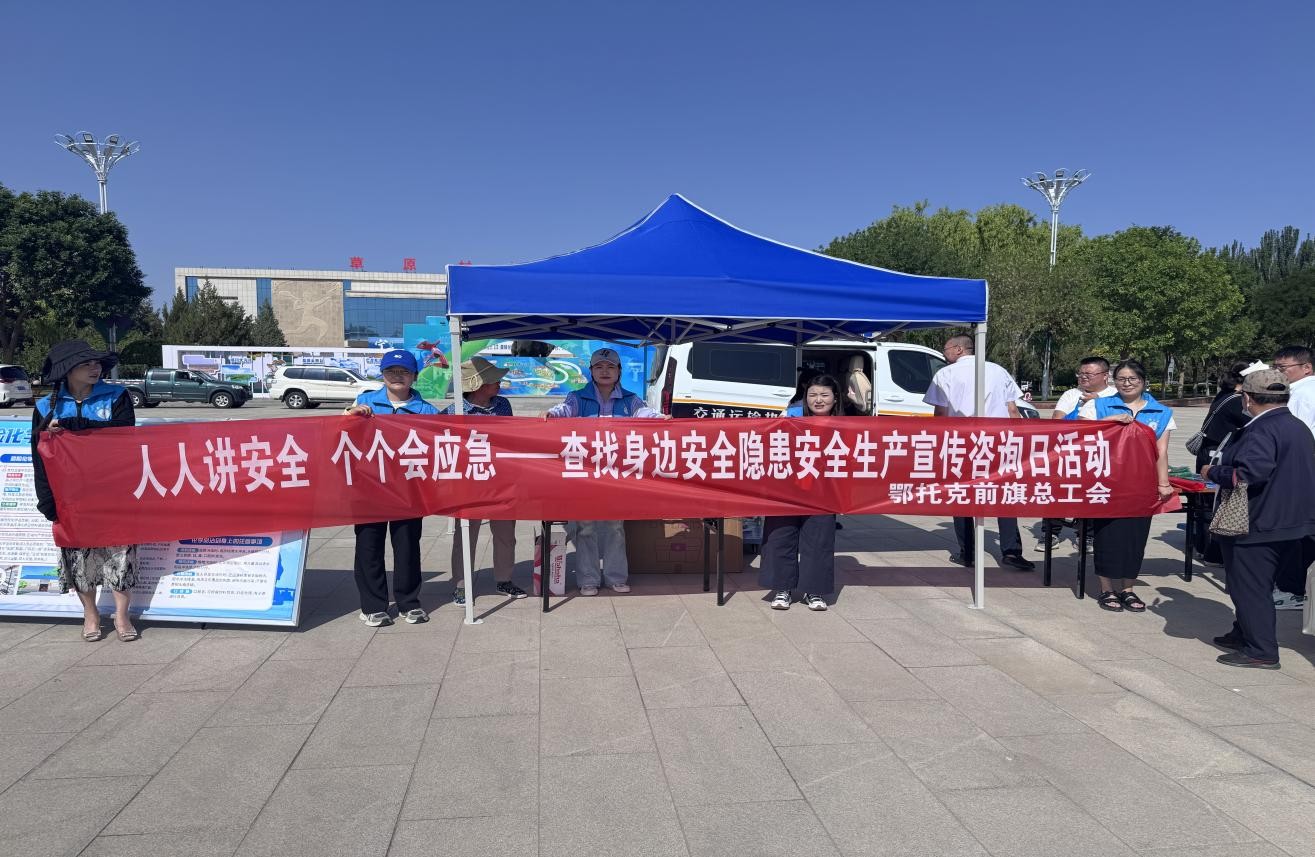 安全生产,重于泰山。为切实提高职工群众安全生产意识,营造“人人讲安全、个个会应急--查找身边安全隐患”的浓厚氛围,6月16日,鄂托克前旗总工会积极响应号召,在马兰花广场开展安全宣传咨询日活动,以实际行动为安全生产保驾护航。