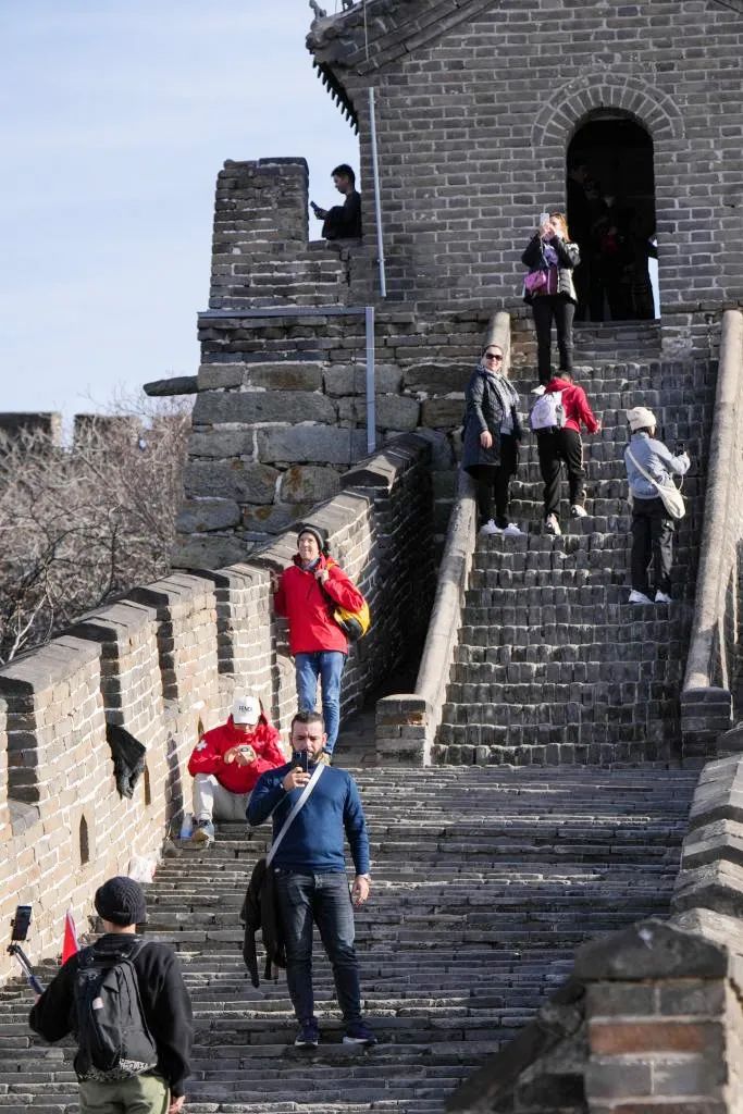 ▲2024年11月4日,外国游客在北京慕田峪长城游览。新华社记者 鞠焕宗 摄