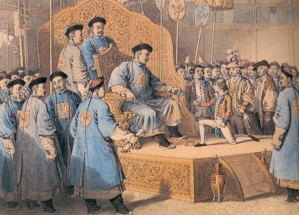 1792年,英国国王乔治三世派遣伯爵乔治·马戛尔尼,率领使团,尝试与清朝建立外交关系,实现开口通商。经过近一年的时间,英国使团抵达北京,前往承德朝觐乾隆皇帝。