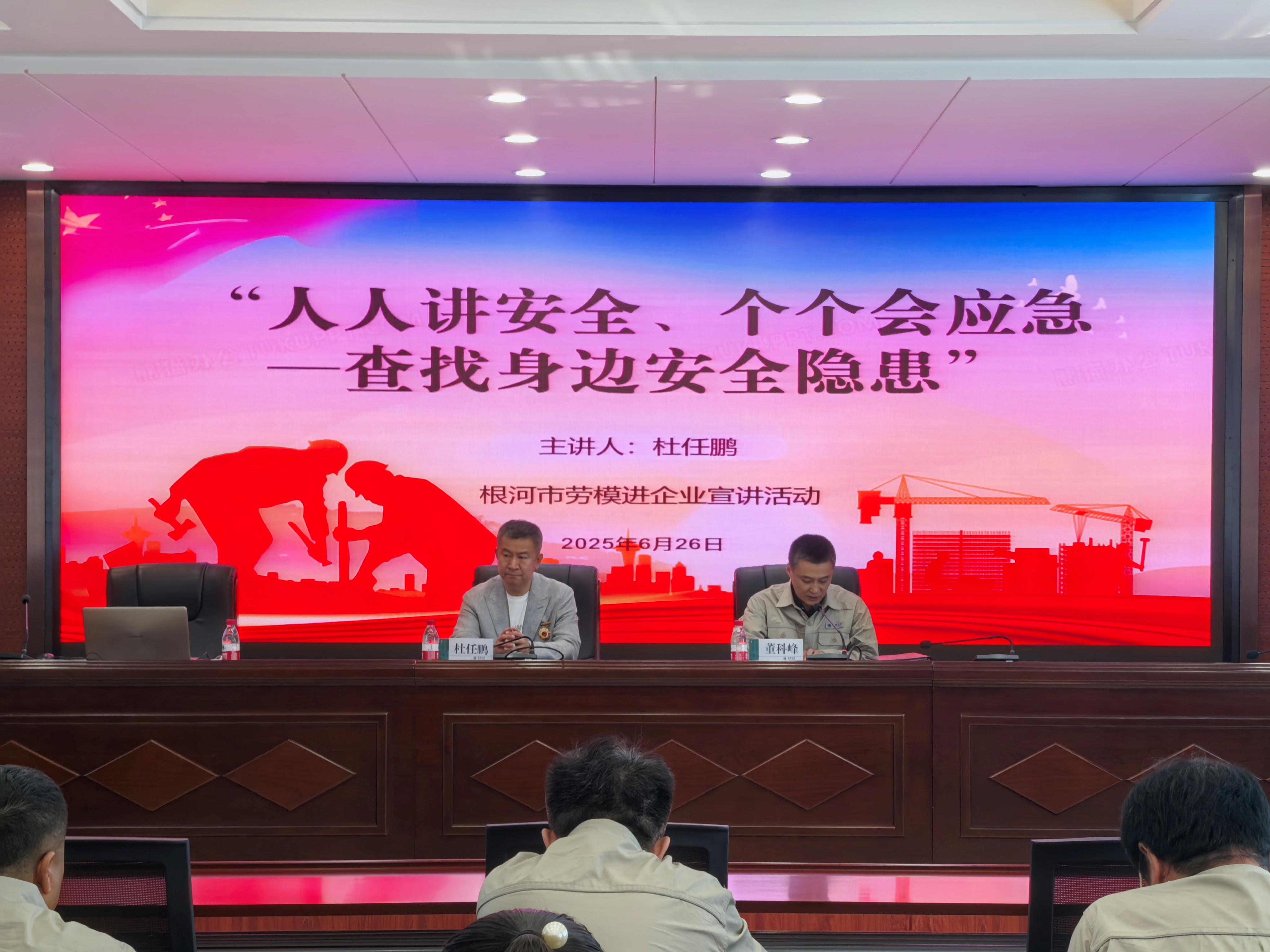 6月26日,根河市总工会开展以“人人讲安全、个个会应急——查找身边安全隐患”为主题的劳模进企业宣讲活动,此次活动邀请了内蒙古自治区先进工作者,根河市人民医院书记杜任鹏走进根河市供电公司宣讲健康知识。