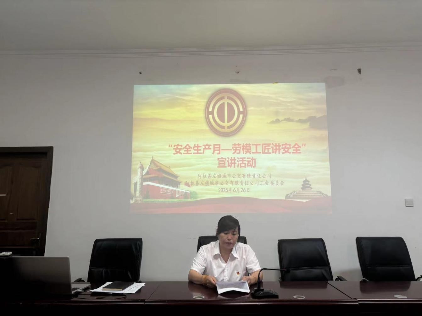 阿拉善盟劳动模范马慧芬是阿拉善左旗城市公交有限责任公司的公交车工会主席兼一线驾驶员,她凭借多年公交车驾驶经验,围绕交通法规解读、应急处置流程及服务规范标准为全体驾驶员开展安全专题宣讲,通过真实案例直观传递安全驾驶要点,着力强化驾驶员安全责任意识,推动“平安出行”理念,为公司安全运营筑牢了意识防线。