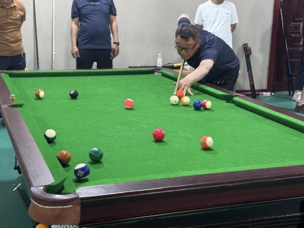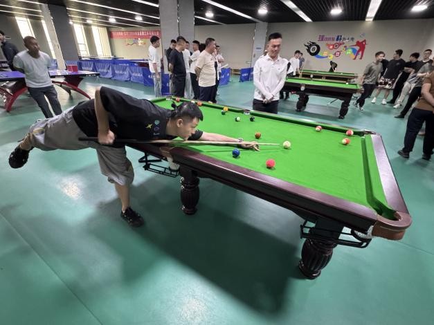 比赛现场气氛热烈,精彩瞬间不断。个人赛中参赛选手们俯身、瞄准、推杆、击球,一气呵成!无论是稳健的防守布局,还是犀利的进攻角度,都展现出台球运动的独特魅力。