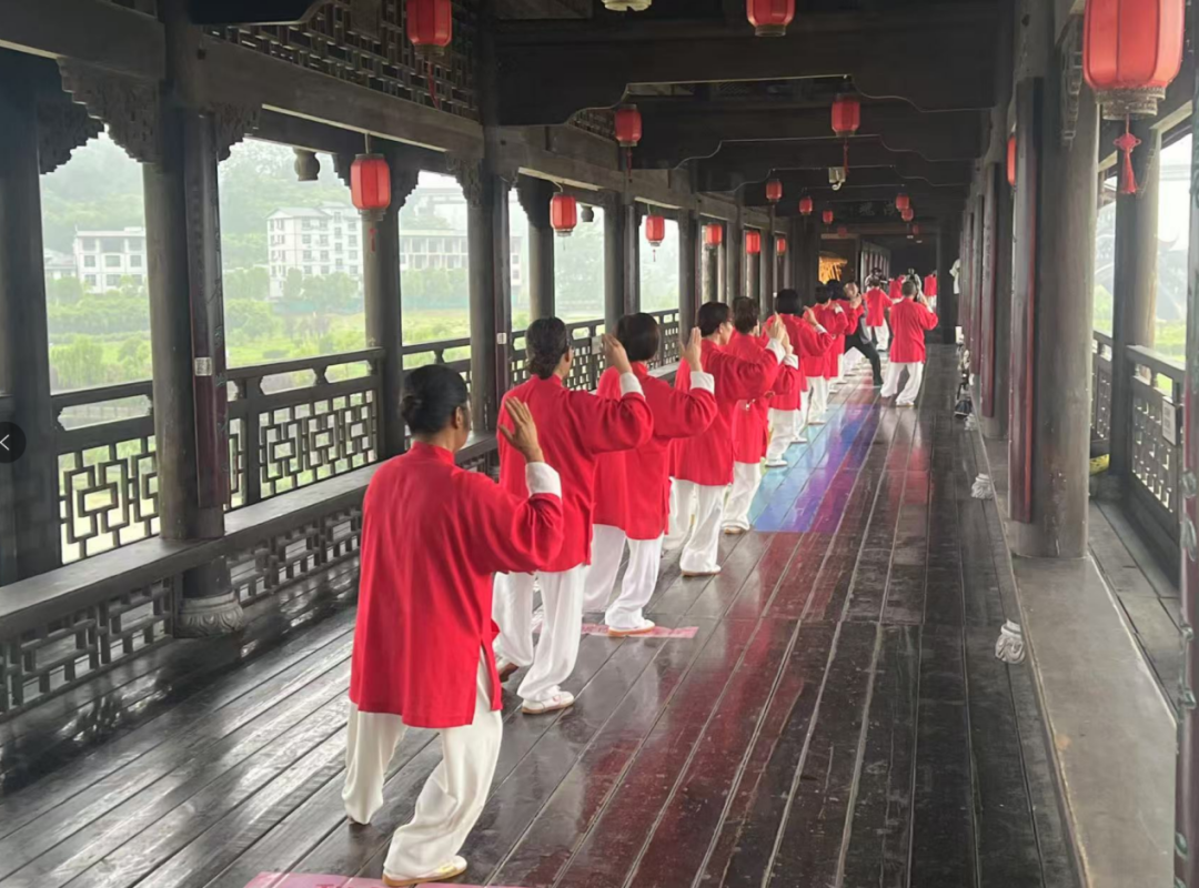 ▲黔江人在风雨廊桥打太极拳(图片来源:黄也摄)
