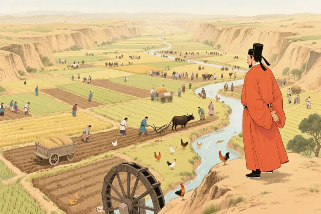 此外,农业更是社会稳定的“压舱石”。发展农业能让百姓安心扎根,衣食有靠,减少流民隐患。广大民众安居乐业后,既能为边关输送兵源,又能通过赋税充实国库。