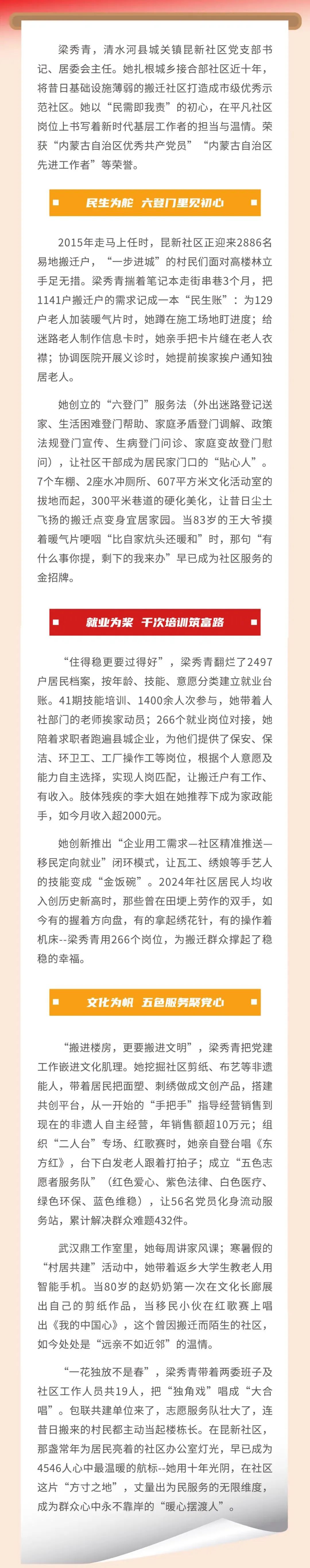 扎根社区的暖心“摆渡人”——记内蒙古自治区先进工作者、清水河县城关镇昆新社区党支部书记、居委会主任梁秀青
