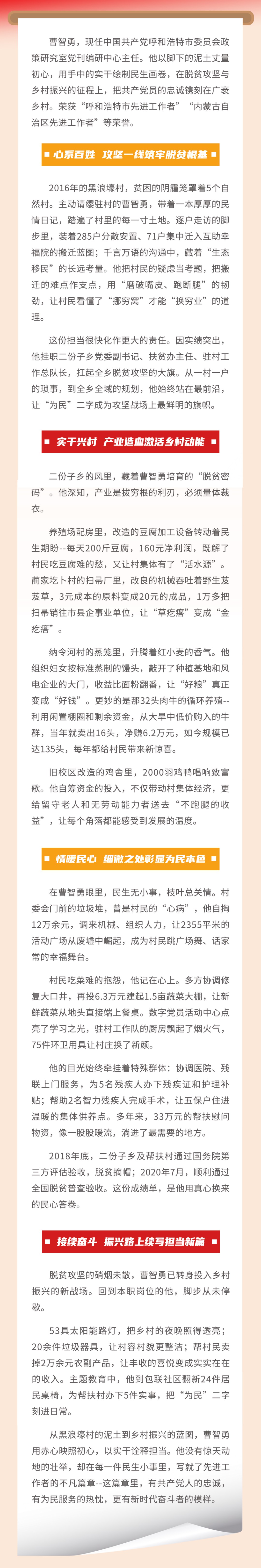 赤心映民心 实干铸丰碑——记内蒙古自治区先进工作者、中国共产党呼和浩特市委员会政策研究室党刊编研中心主任曹智勇