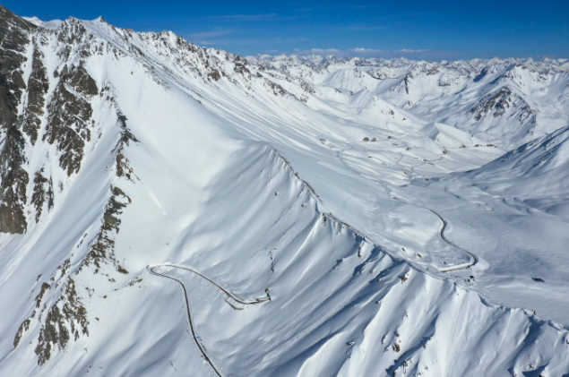 ▲雪满天山路(图片来源:新华社记者 胡虎虎 摄)