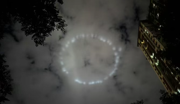 ▲北京夜空上的“光轮”(图片来源:江南都市报)