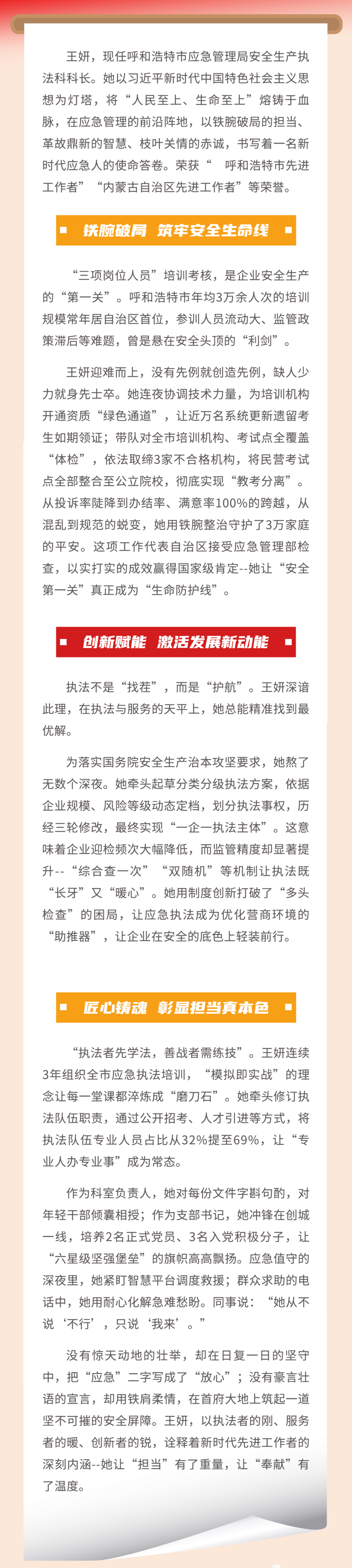 铁肩担应急 丹心护民安——记内蒙古自治区先进工作者、呼和浩特市应急管理局安全生产执法科科长王妍