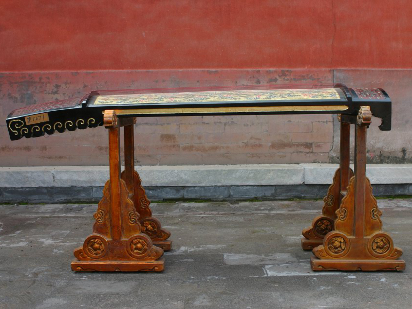 ▲清代黑漆彩画云龙纹瑟,故宫博物院藏。