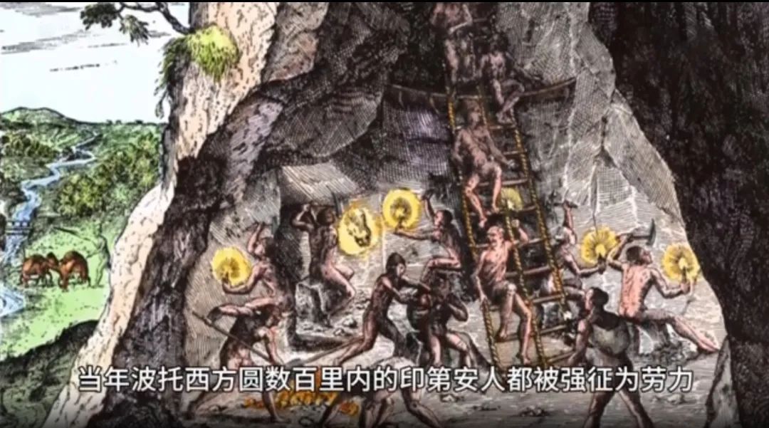 ▲西班牙殖民者强迫印第安人在波托西开采金矿(图片来源:新华社客户端)