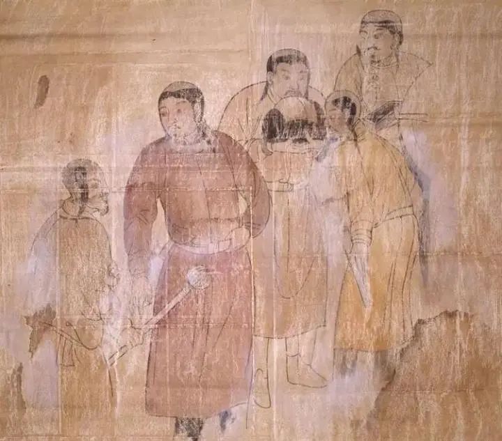 ▲内蒙古库伦旗前勿力布格辽墓壁画《出行图》局部之主仆图。(图片来源:澎湃网)