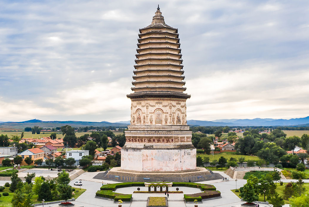 ▲位于内蒙古赤峰市宁城县辽中京遗址内的大明塔,据考古学家分析为辽代所建。(图片来源:辽中京博物馆官网)