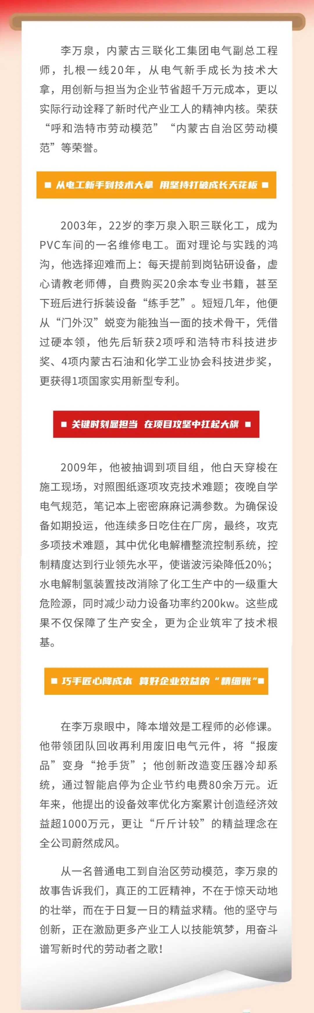 以梦为马 平凡岗位书写不平凡的人生——记内蒙古自治区劳动模范、内蒙古三联化工集团电气副总工程师李万泉