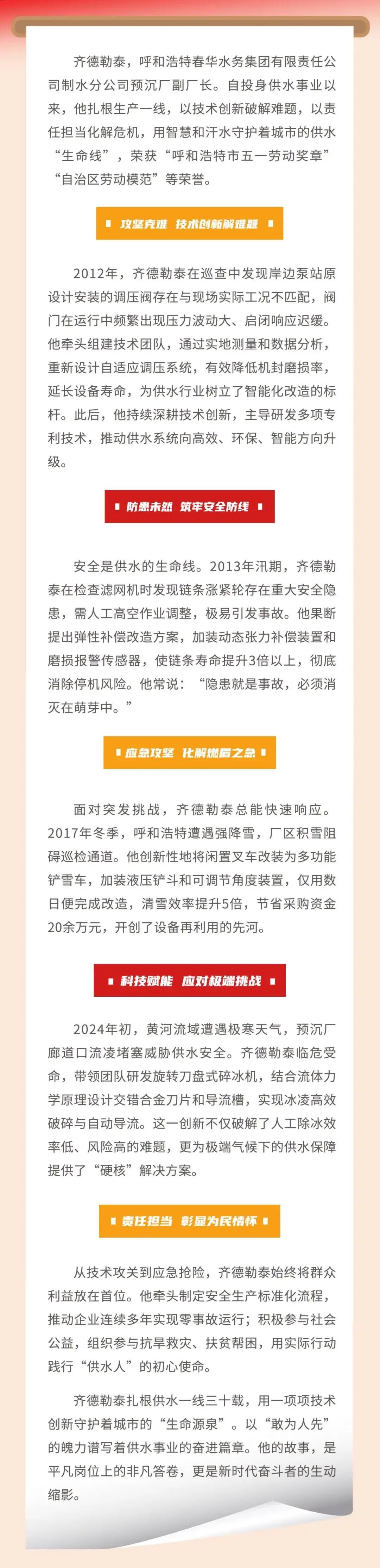 守护城市供水的“隐形英雄”——记内蒙古自治区劳动模范、呼和浩特春华水务集团有限责任公司制水分公司预沉厂副厂长齐德勒泰