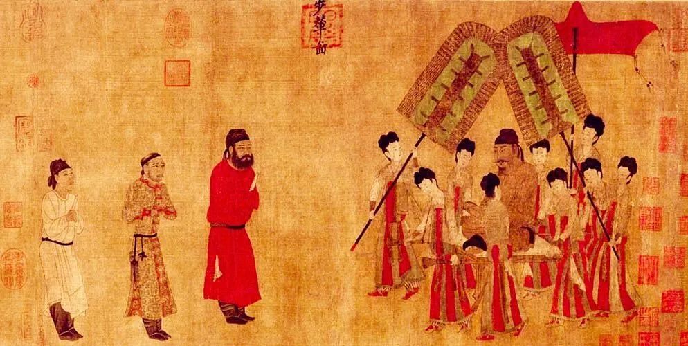 ▲《步辇图》(局部),唐太宗李世民接见松赞干布派来求婚使臣禄东赞情景。(图片来源:故宫博物院官网)