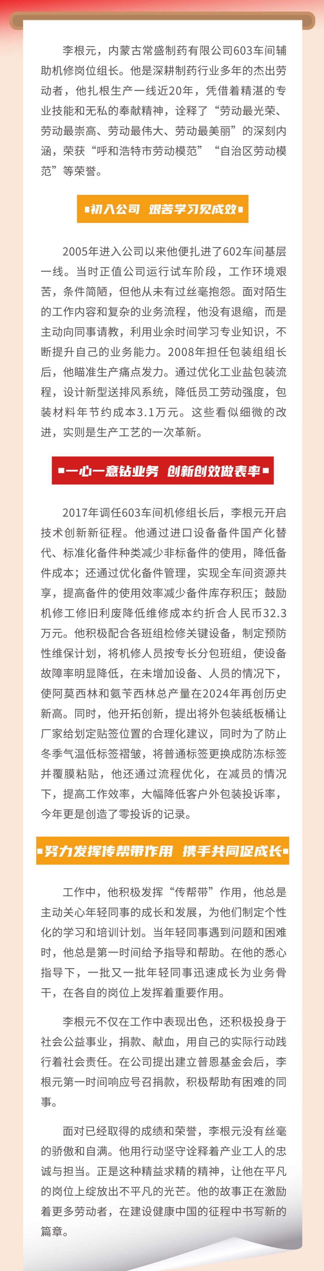 匠心铸魂 匠艺报国——记内蒙古自治区劳动模范、内蒙古常盛制药有限公司603车间辅助机修岗位组长李根元
