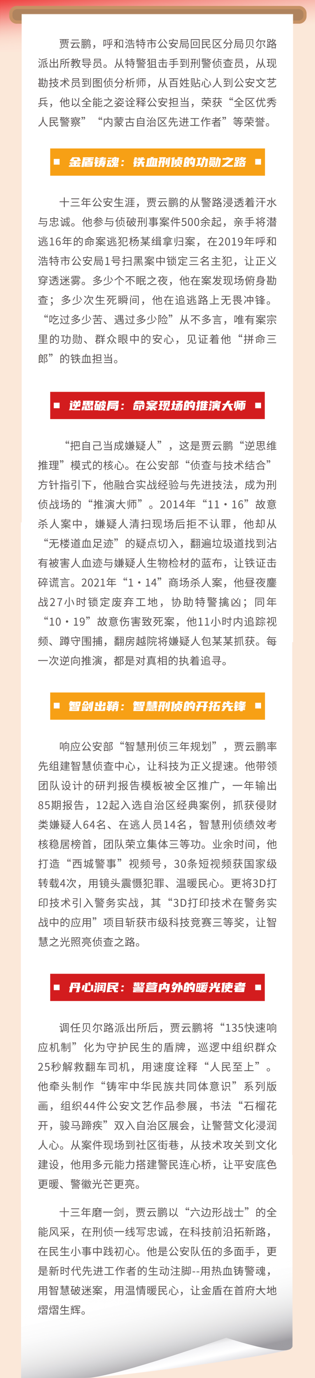 首府公安的“六边形战士”——记内蒙古自治区先进工作者、呼和浩特市公安局回民区分局贝尔路派出所教导员贾云鹏