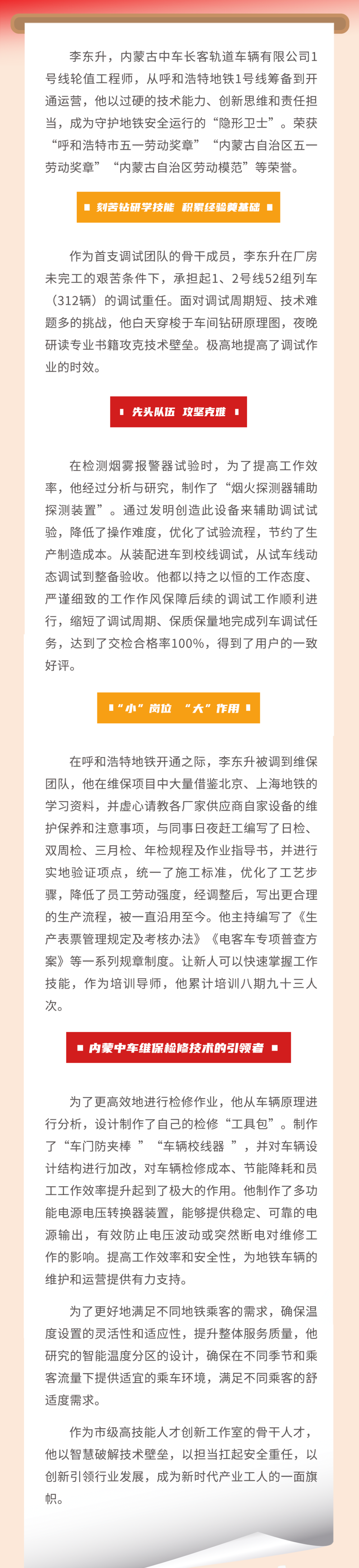 坚守在地铁维保 “神经中枢”的守护者——记内蒙古自治区劳动模范、内蒙古中车长客轨道车辆有限公司1号线轮值工程师李东升