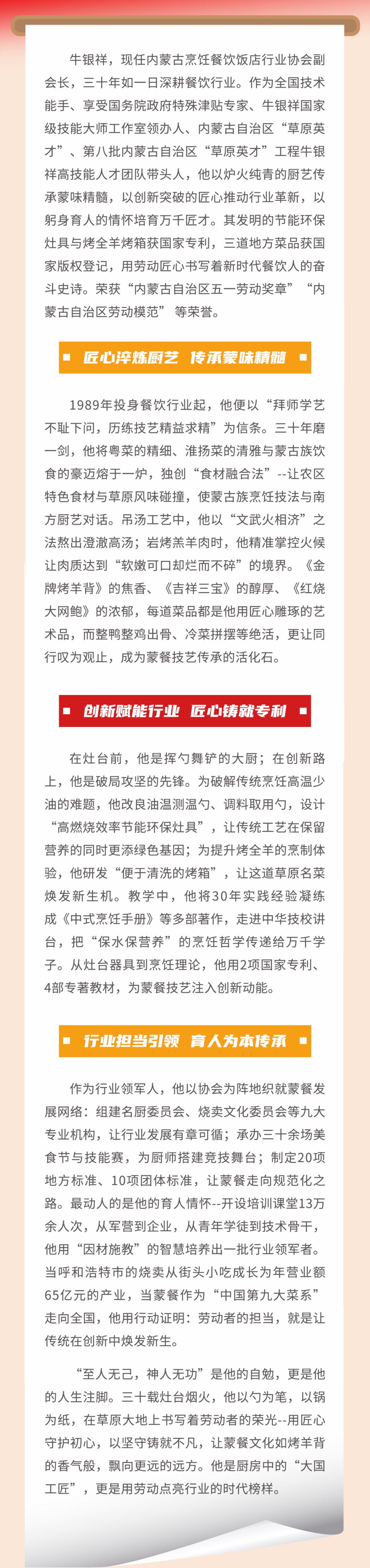 匠心铸魂三十载 烹燃草原饮食魂 ——记内蒙古自治区劳动模范、内蒙古烹饪餐饮饭店行业协会副会长牛银祥