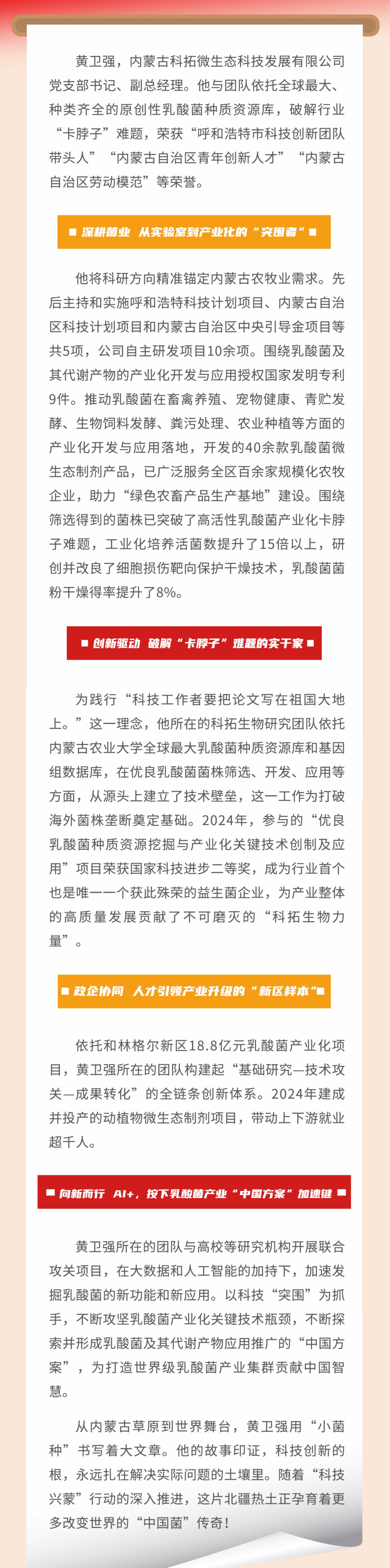 专注创新驱动乳酸菌产业突围 助力农牧业高质量发展——记内蒙古自治区劳动模范、内蒙古科拓微生态科技发展有限公司党支部书记、副总经理黄卫强