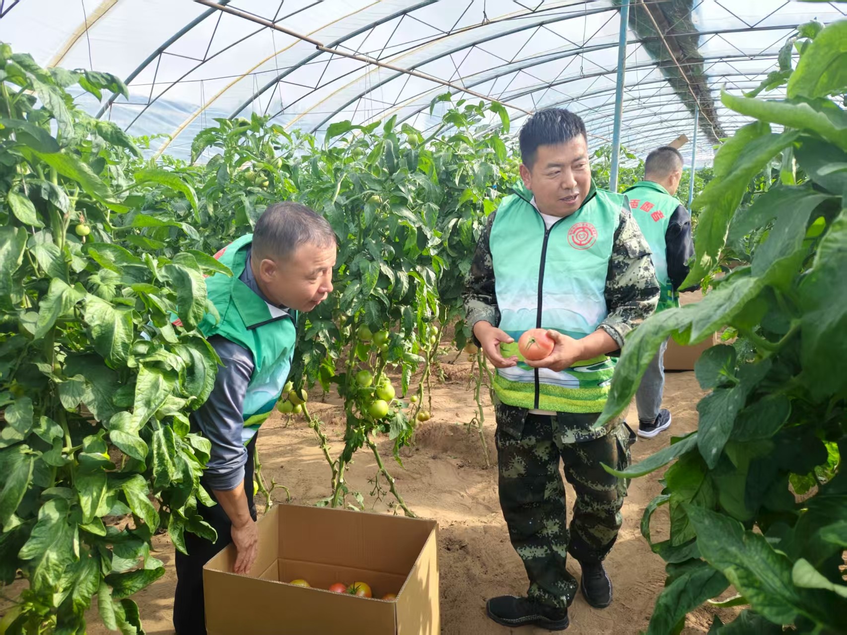 活动中,劳模志愿者们走进南郊助农市场,与农户面对面沟通,采摘并打包玉米、茄子、青椒、西红柿等10余种新鲜蔬菜共120箱,并免费送到白音锡勒牧场牧民职工手中,用实际行动架起助农惠农的“连心桥”。这一举措不仅帮助南郊农户拓宽了即时销路,也让优质农产品直接对接了需求端。
