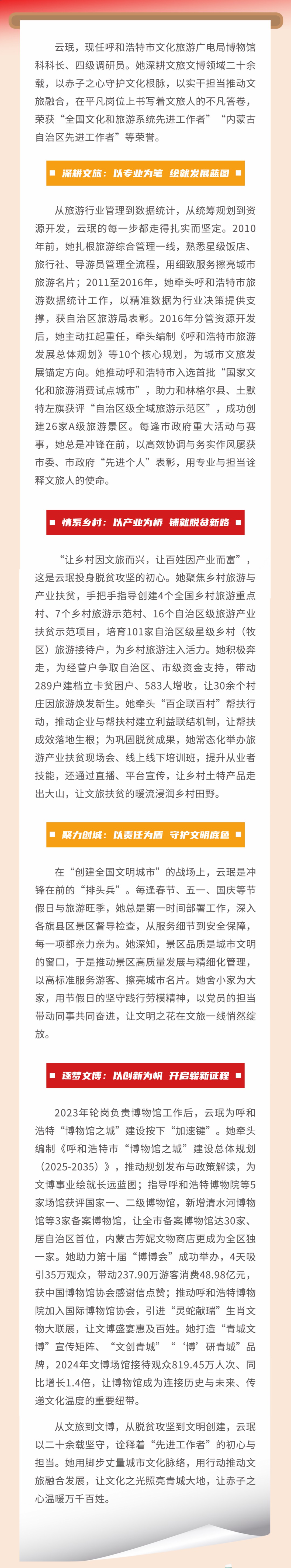 履职担当文博路 文旅融合赤子心——记内蒙古自治区先进工作者、呼和浩特市文化旅游广电局博物馆科科长、四级调研员云珉