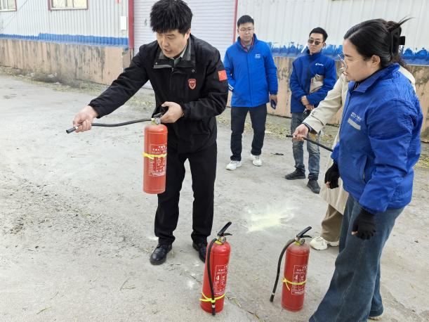 理论讲解结束后,杨教官在集合点重点开展了便携式灭火器的实操教学。通过“手把手”指导,大家熟练掌握了灭火器“提、拔、握、压”的使用步骤,并分组进行实战模拟灭火。大家积极参与、反复练习,切实提升了应急处置技能。