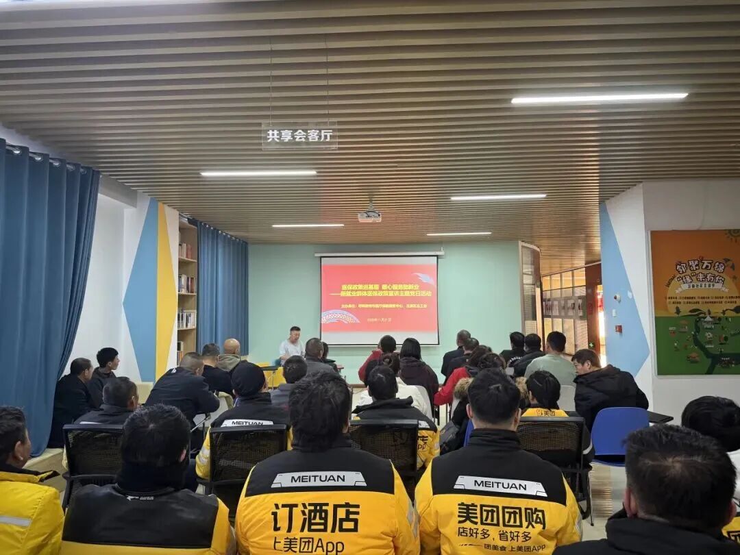 为全力推进新就业形态劳动者权益保障工作,进一步提升新就业群体对医保政策的知晓度,11月21日,呼和浩特市玉泉区总工会携手呼和浩特市医疗保险服务中心,在万锦社区党群服务中心开展新业态劳动者医保政策宣讲活动,40名美团外卖骑手、网约车司机、货车司机代表齐聚现场,收获满满“政策干货”与暖心关怀。
