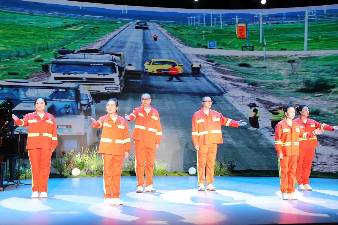 聚光灯下,一首《公路人之歌》深情款款,将观众们的思绪带到了蜿蜒的公路之上。朗诵者们用声音塑造了公路工人顶烈日、冒风雨,以路为家的感人形象,歌颂了他们“铺路石”般默默奉献、坚韧不拔的精神。