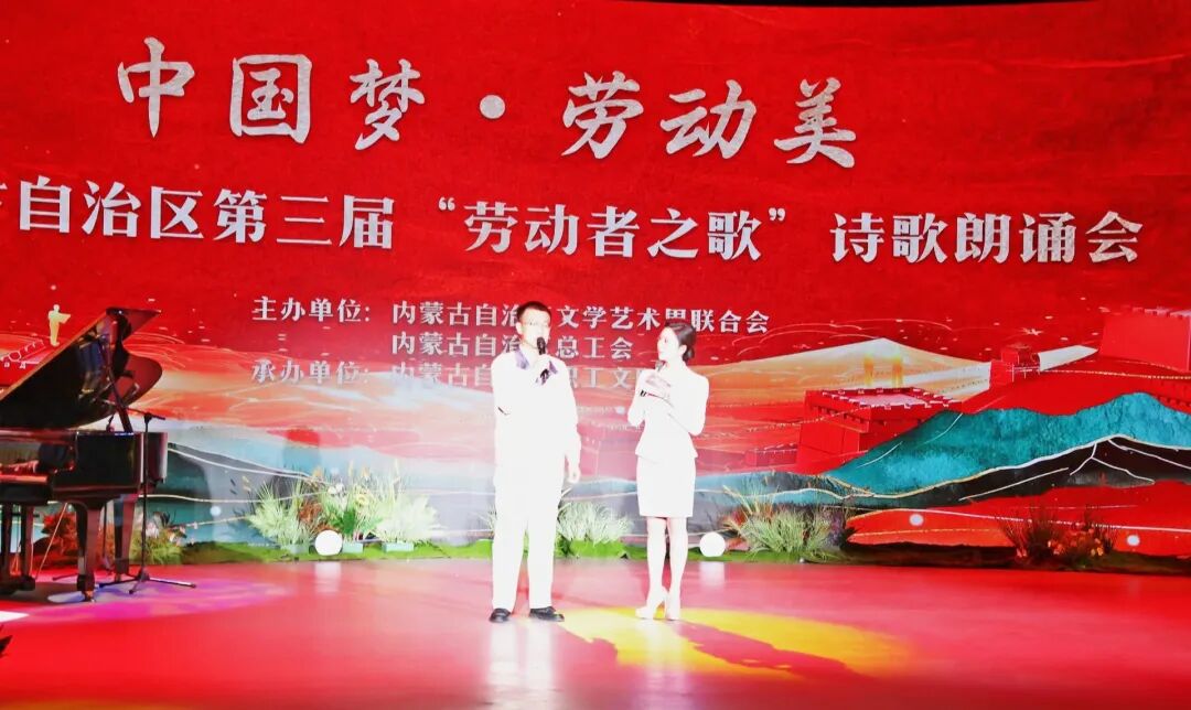 此次诗歌朗诵会由自治区总工会与文学艺术界联合会举办、内蒙古职工文联承办,全国和自治区劳动模范、五一劳动奖章获得者代表,及各行业职工群众代表观看演出,在铿锵的诗行与动人旋律中,共同感受劳动的伟大与光荣。