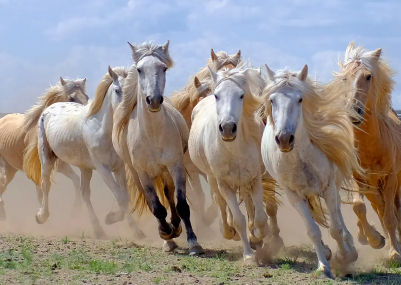 ▲内蒙古锡林郭勒草原上奔跑的马群。(图片来源:新华每日电讯)