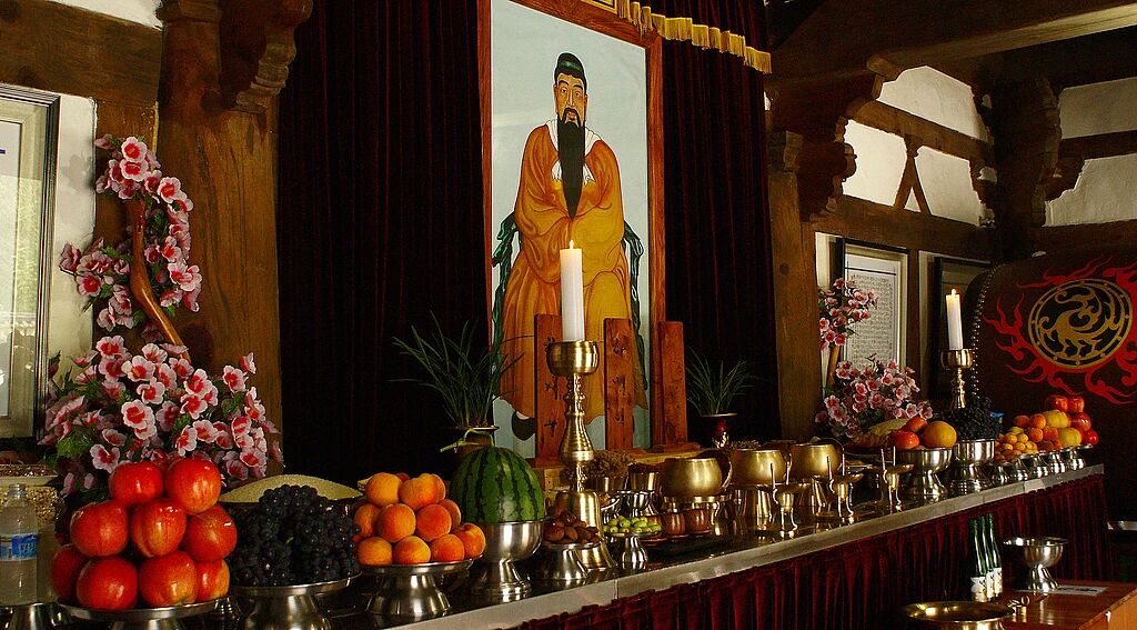 ▲檀君殿,檀君神话传说最早见于13世纪高丽僧人一然所著《三国遗事》,建构天神桓雄与熊女结合诞下檀君并建立古朝鲜国的故事(图片来源:视觉中国)