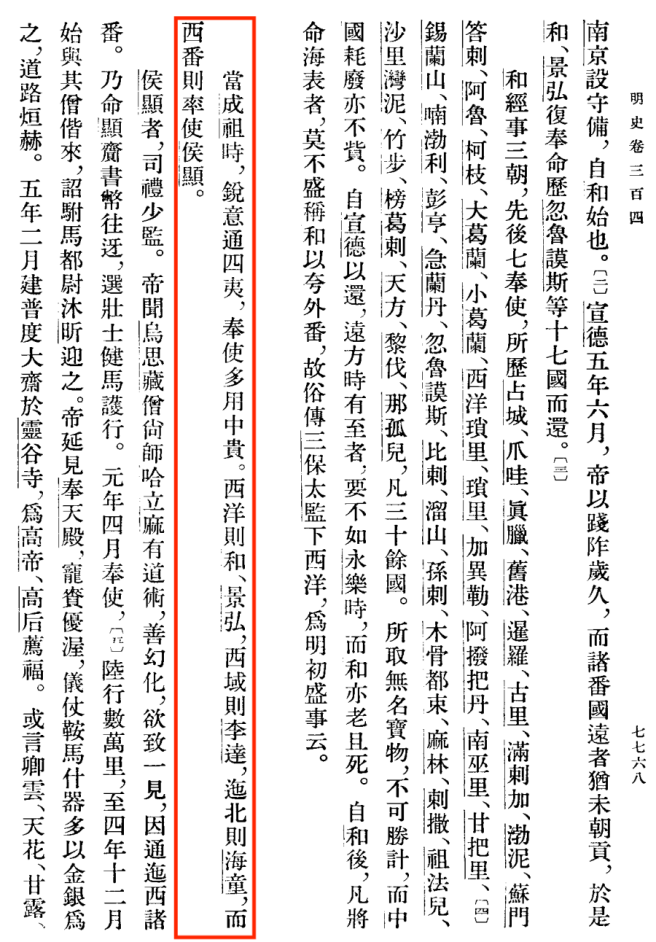 ▲《明史》对于侯显专使西番的记载(图片来源:《明史·卷三百四·列传第一百九十二》)