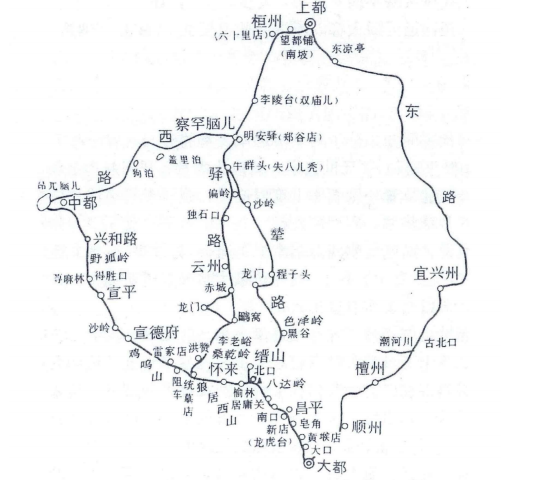 ▲元代连通上都和大都之间的主要驿路。(图片来源:史卫民《都市中的游牧民:元代城市生活长卷》,第263页)