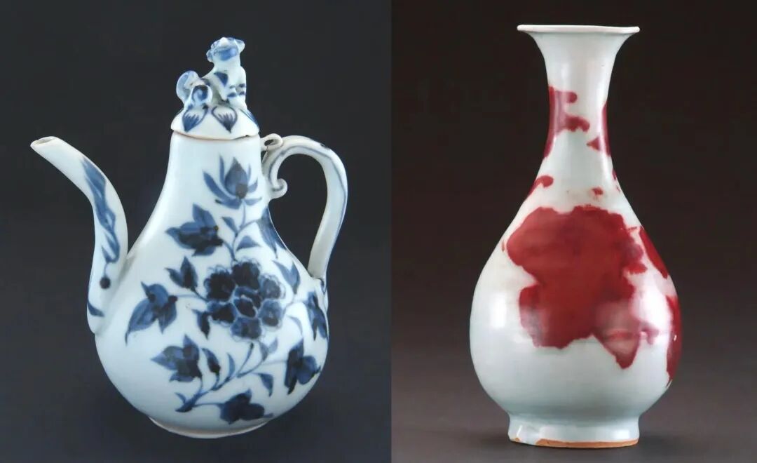 ▲集宁路古城出土的青花瓷壶(左)和釉里红玉壶春瓶(右)。(图片来源:乌兰察布市文化旅游体育局官网)