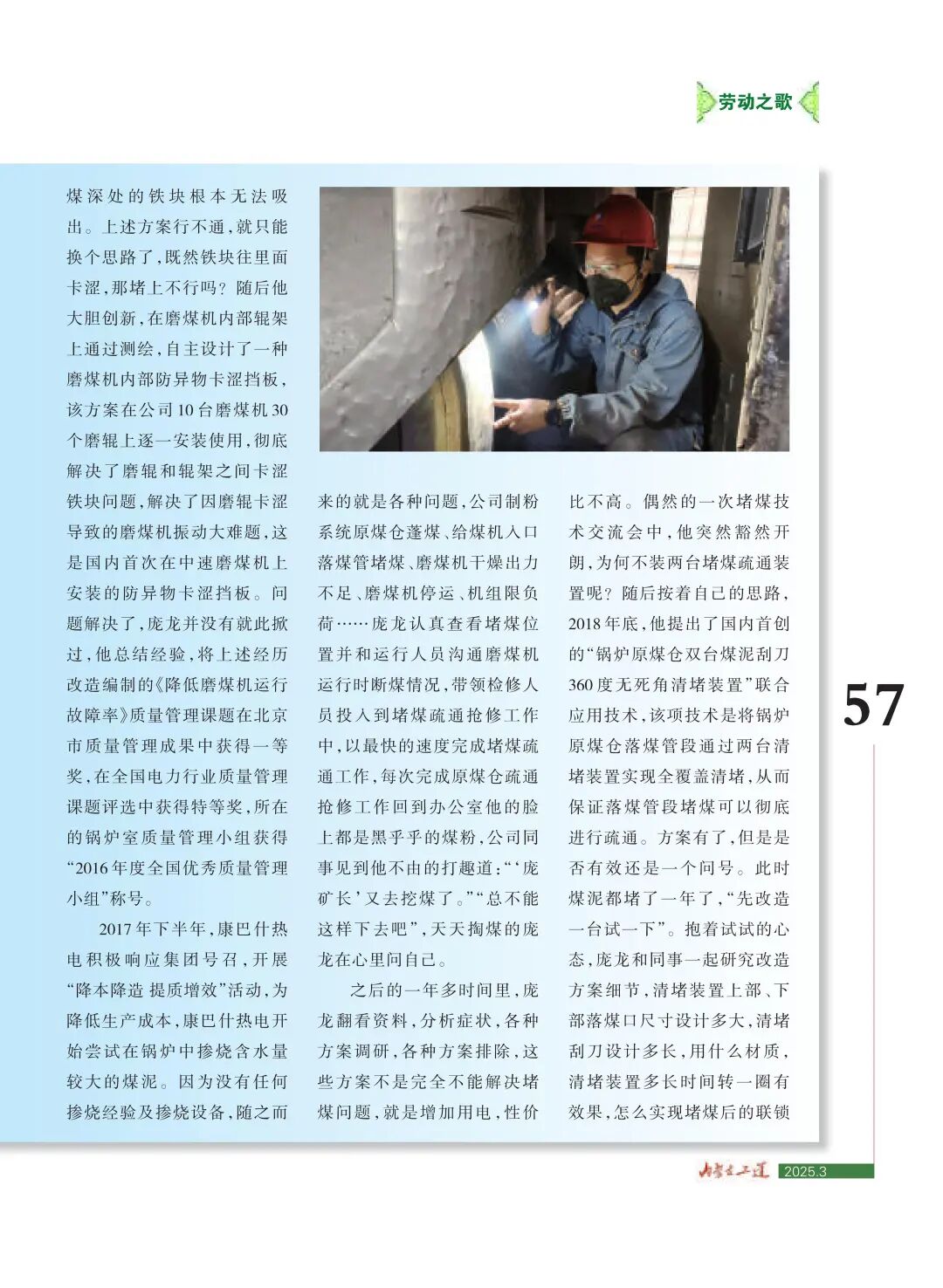 勤于探索求创新,让“老锅炉”烧出“新水平”——记自治区五一劳动奖章获得者、内蒙古京能康巴什热电有限公司设备管理部锅炉室主任庞龙