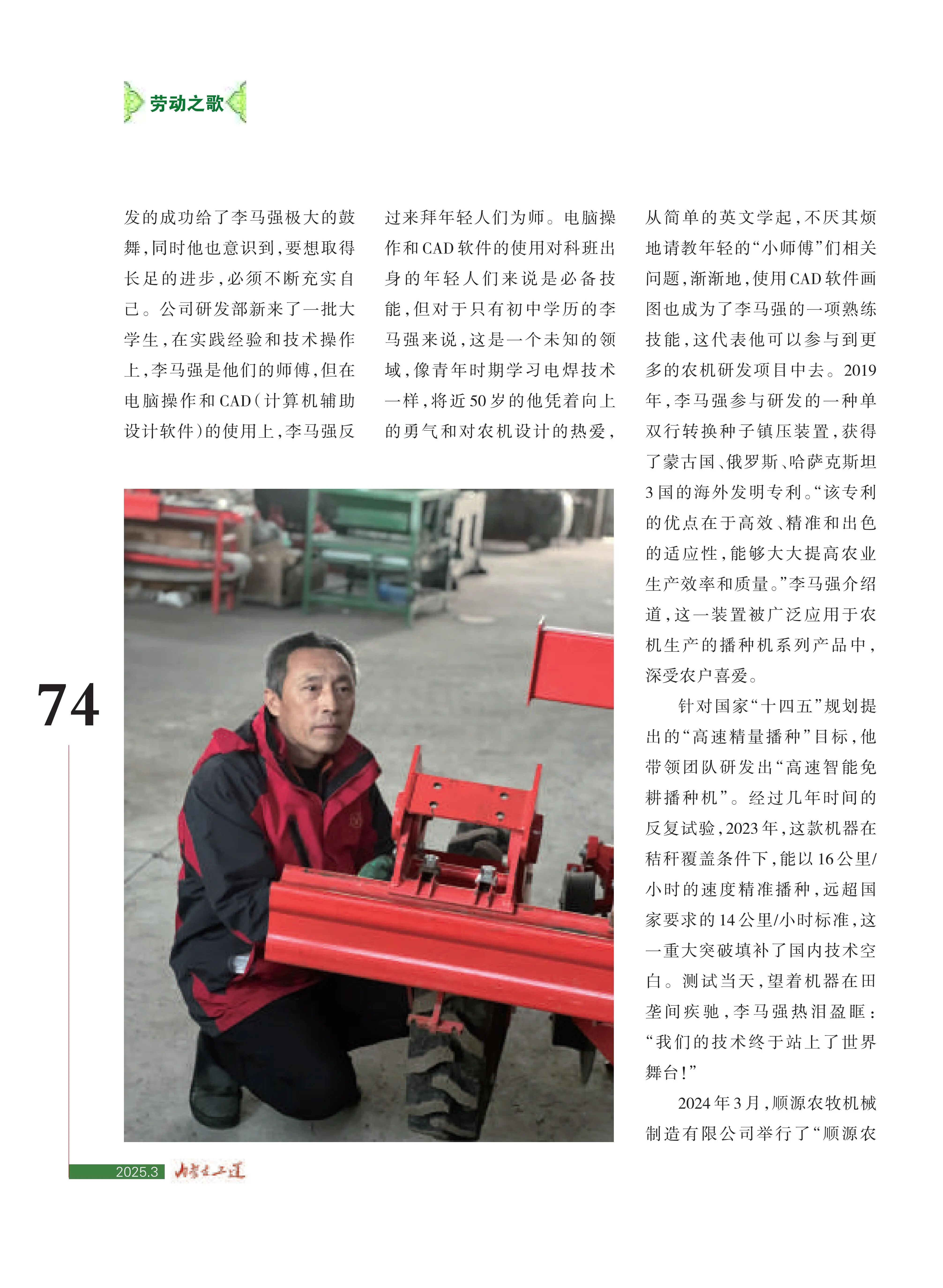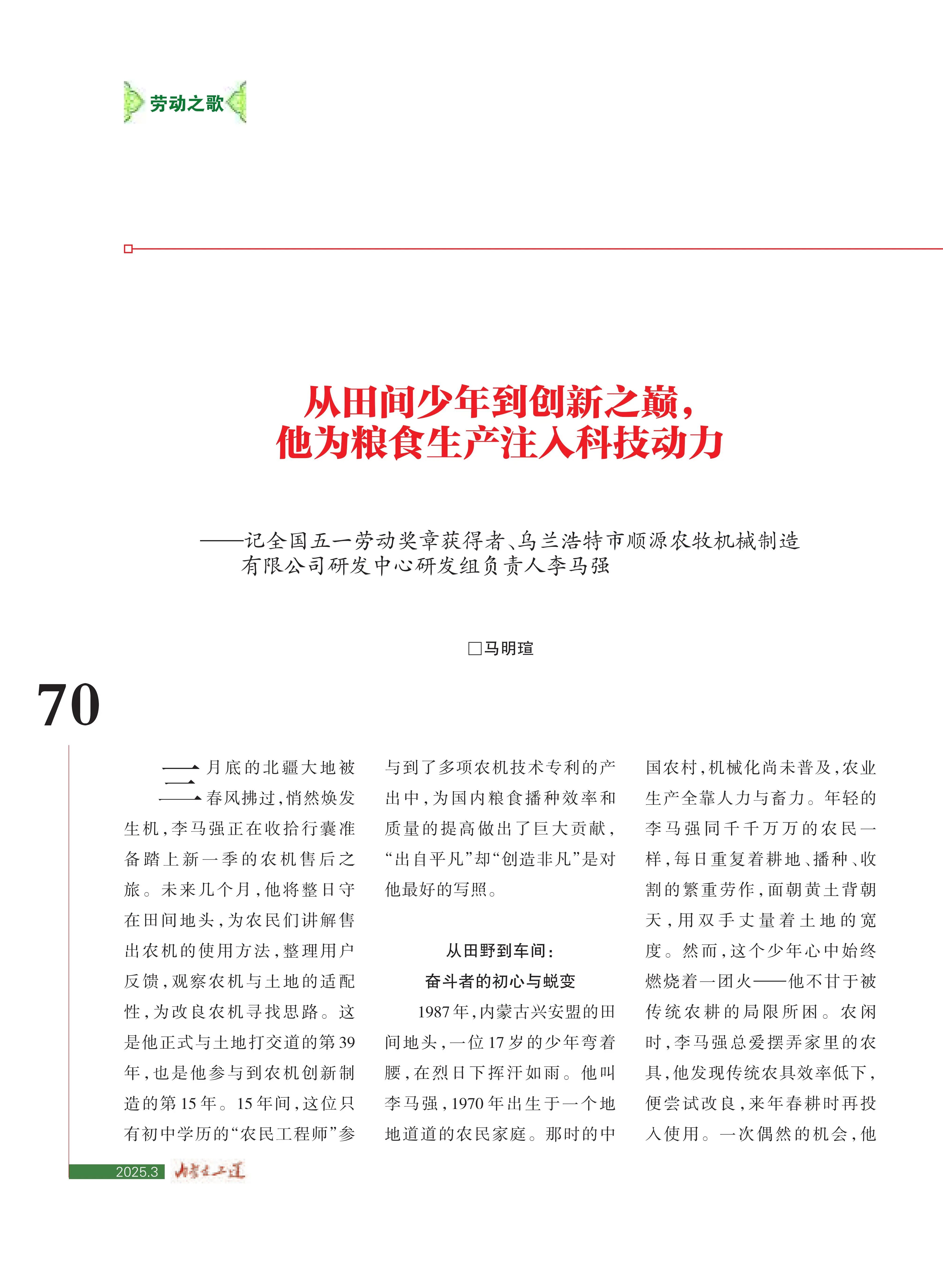从田间少年到创新之巅,他为粮食生产注入科技动力——记全国五一劳动奖章获得者、乌兰浩特市顺源农牧机械制造有限公司研发中心研发组负责人李马强