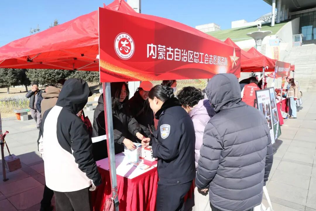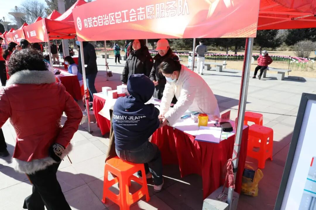 为深入学习贯彻党的二十届四中全会精神,落实习近平总书记致中国志愿服务联合会第三届会员代表大会的重要贺信精神,3月5日,由自治区党委社会工作部等单位主办的“志愿耀北疆”全区志愿服务集中示范活动暨第四届社区邻里节在内蒙古博物院宝鼎广场举行。作为协办单位之一,自治区总工会积极组织志愿者参与活动,开展“互助保障宣传+健康义诊”志愿服务,以实际行动弘扬雷锋精神,服务职工群众。