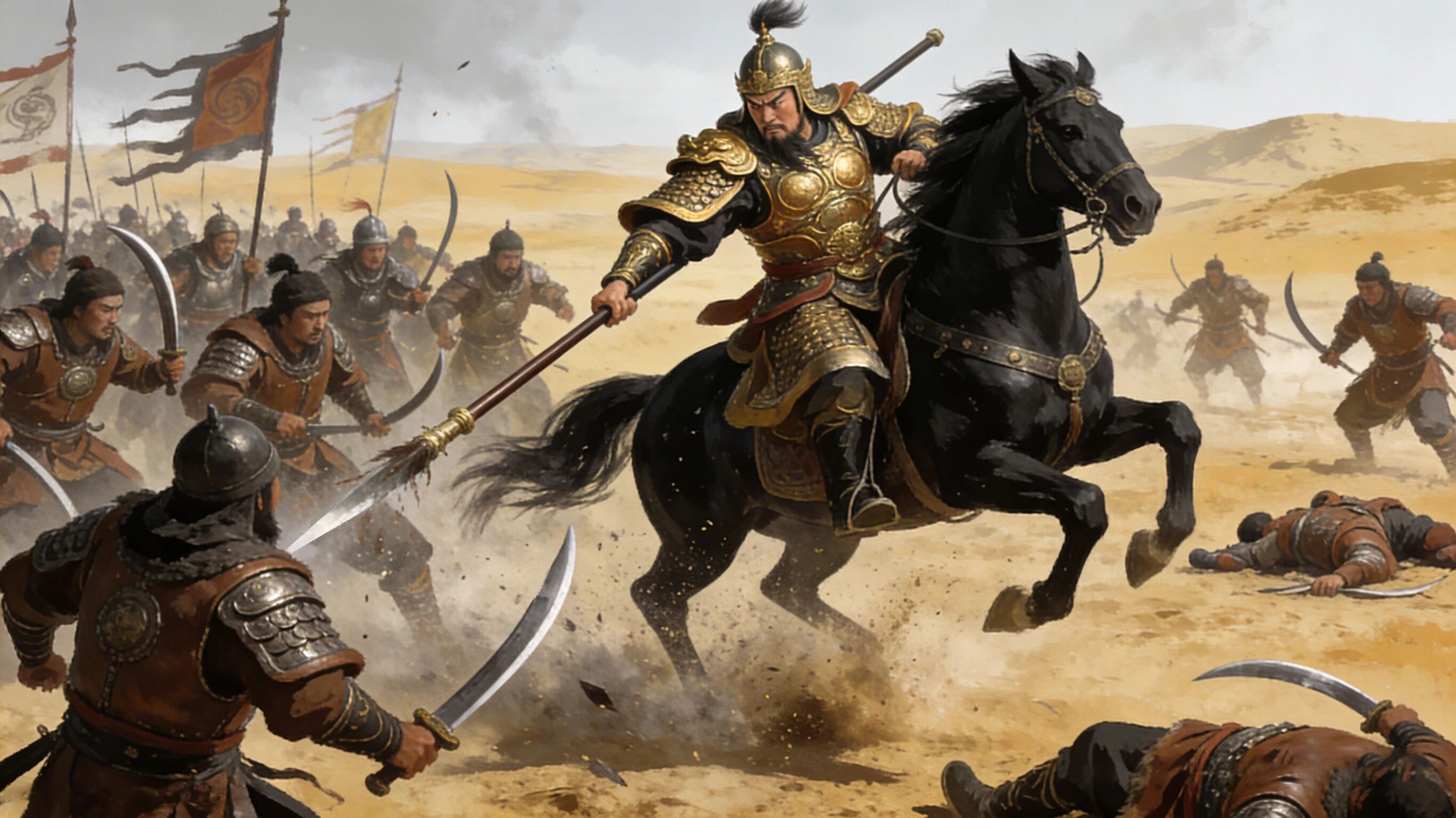 正巧吐蕃赞普在郁标川阅兵,漫山遍野都是人。王忠嗣纵马持枪,一头扎了进去。那一天,他带着几百人,斩杀数千敌军,缴获的羊马漫山遍野。